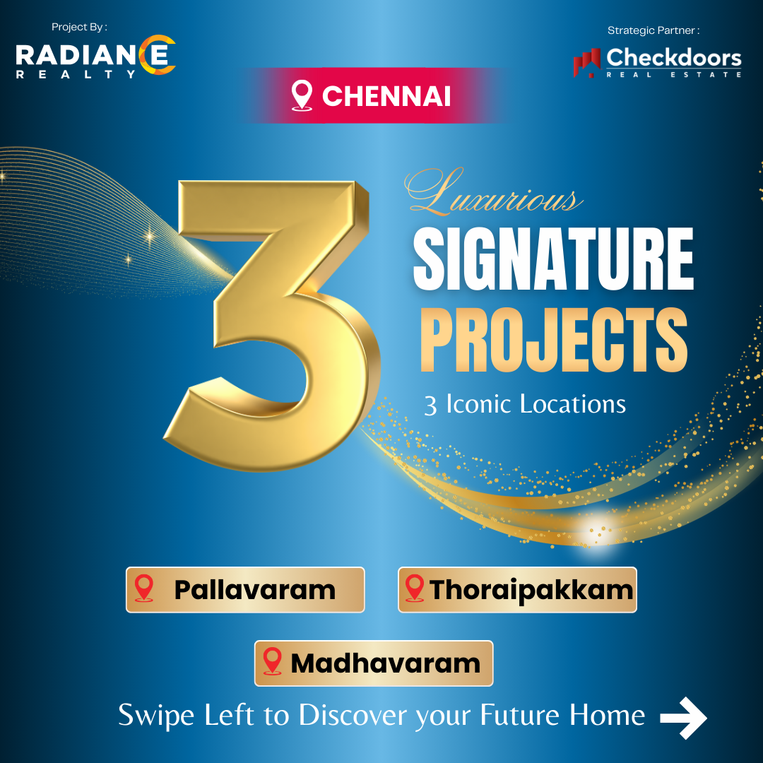 Radiance Realty, headquartered in Chennai, is a leading South Indian real estate developer known for sustainable, technically advanced, and investment-grade residential projects that align with modern living and long-term value creation.